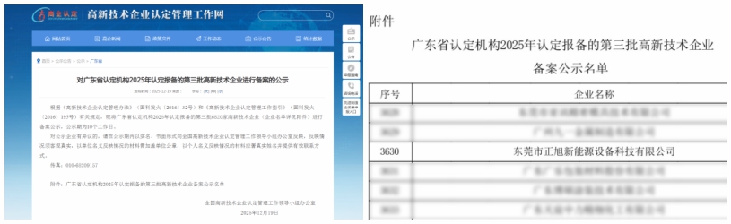春风传捷报,创新启新程!近日,东莞市正旭新能源设备科技有限公司(以下简称“正旭”)凭借持续的技术创新能力、坚实的研发实力及卓越的成果转化水平,顺利通过国家高新技术企业复审认定,这也是公司第五次获此殊荣,再度彰显了正旭在空气源热泵领域的行业标杆地位与核心竞争力。